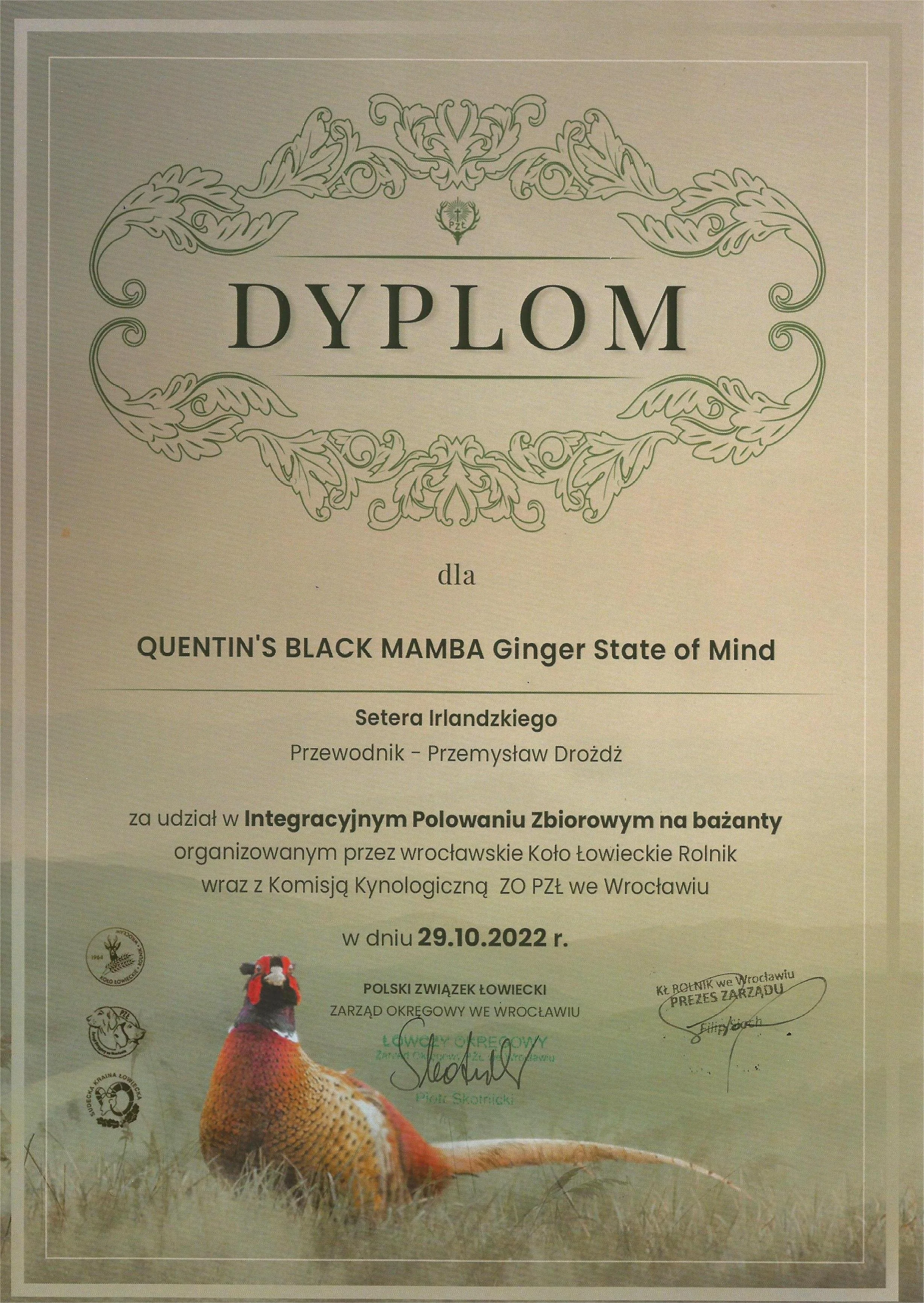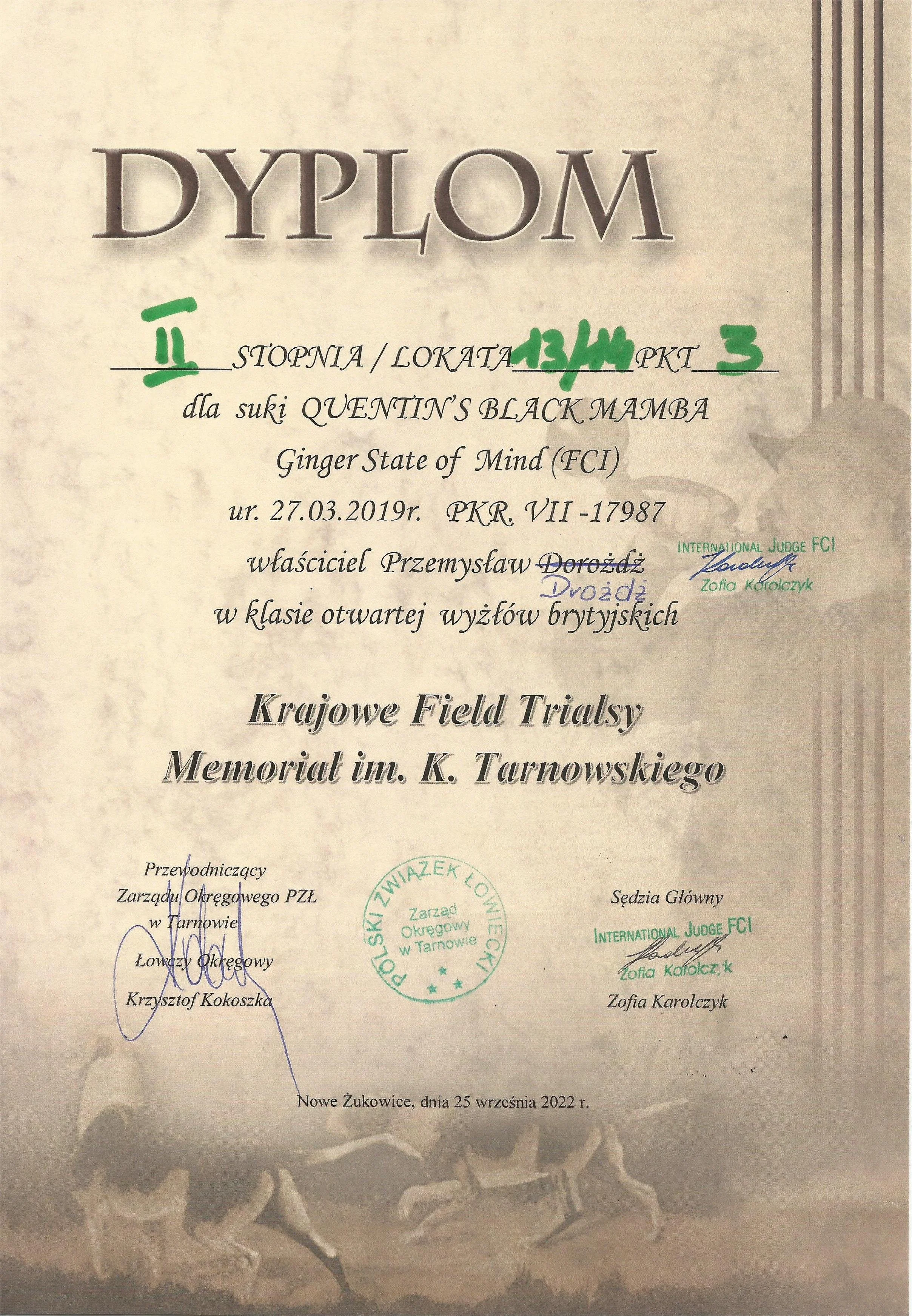 DYPLOM II STOPNIA - KRAJOWE FIELD TRIALS MEMORIAŁ im. KAZIMIERZA TARNOWSKIEGO