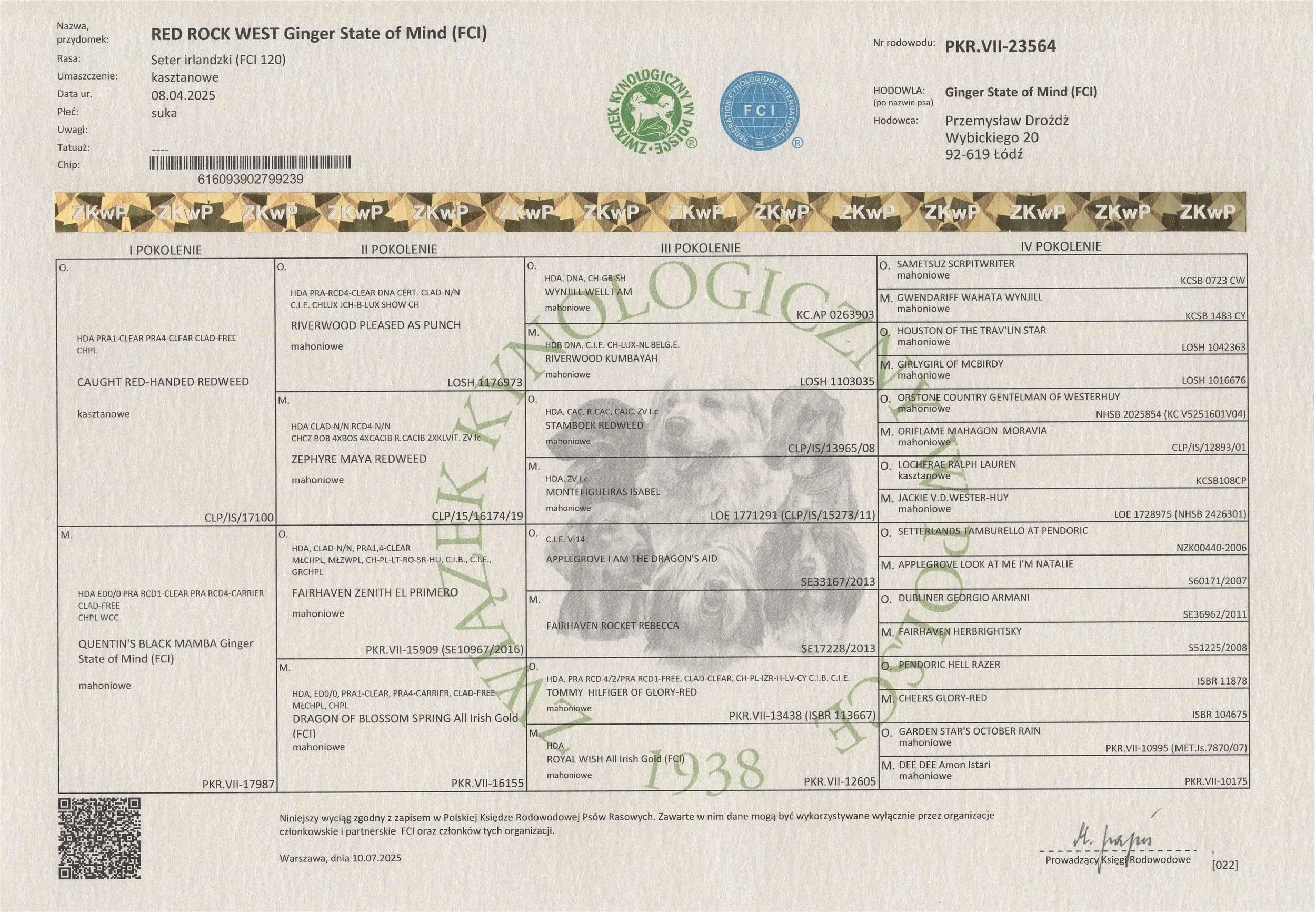 RED ROCK WEST Ginger State of Mind Apr 8 Written By gingerstateofmind fci Nr. Rodowodu: PKR.VII - 23564 gingerstateofmind fci